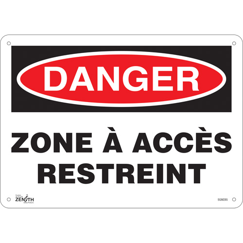 “Zone à Accès Restreint” Sign, 10″ x 14″, Plastic, French