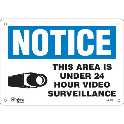 “24 Hour Surveillance” Sign, 7″ x 10″, Plastic, English with Pictogram