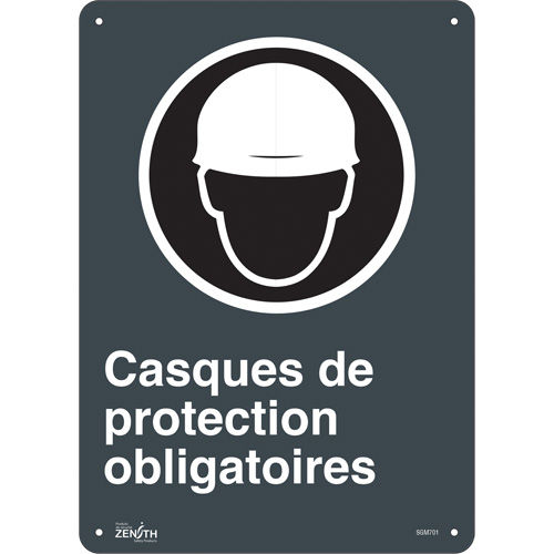 “Casques De Protection Obligatoires” Sign, 14″ x 10″, Plastic, French with Pictogram