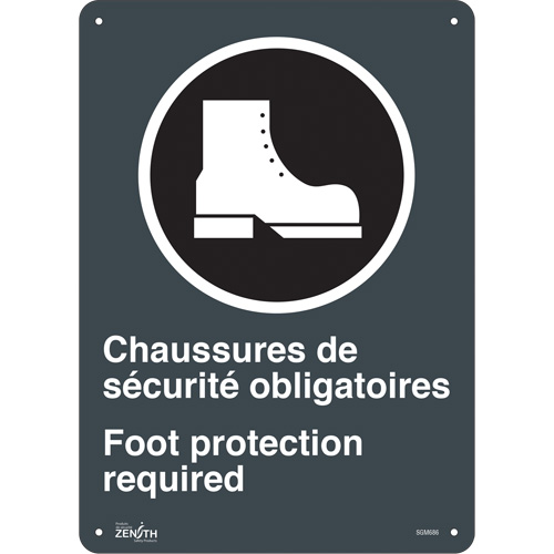“Chaussures de Sécurité / Foot Protection” CSA Safety Sign, 14″ x 10″, Plastic, Bilingual with Pictogram