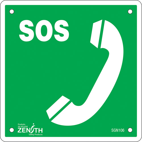 Emergency Telephone CSA Safety Sign, 6″ x 6″, Plastic, Bilingual with Pictogram