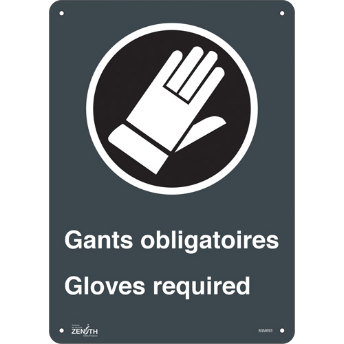 “Gant Obligatoires – Gloves Required” Sign, 14″ x 11″, Aluminum, Bilingual with Pictogram