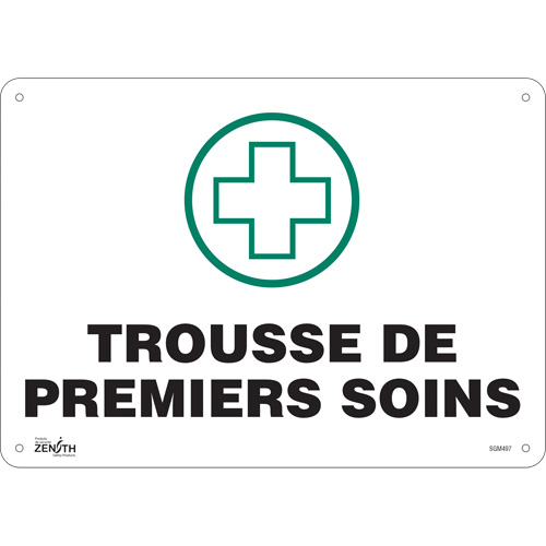 “Premiers Soins” Sign, 10″ x 14″, Plastic, French with Pictogram